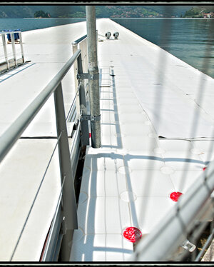 Le passerelle galleggianti sono state realizzate con circa 220.000 cubi di polietilene ad alta densità e ricoperte da 100.000 metri quadrati di tessuto giallo brillante (giallo dalia).